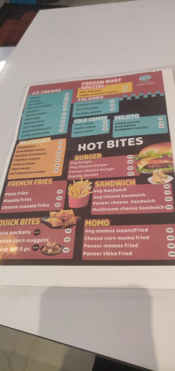 FROZZN BOAT Cafe and Cakes Menu